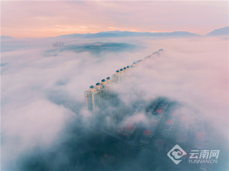 清晨,雨后的安宁市太平新城山岚染黛、云蒸霞。