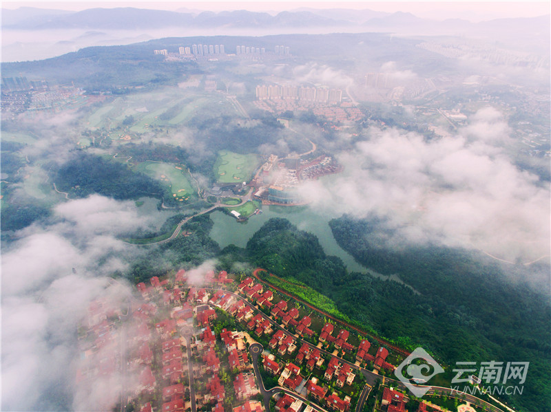 清晨,雨后的安宁市太平新城山岚染黛、云蒸霞。