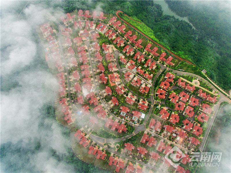 清晨,雨后的安宁市太平新城山岚染黛、云蒸。