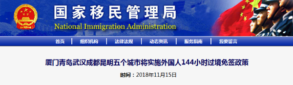 据国家移民管理局有关负责人介绍,此次5个城市实施的外国人144小时过境免签政策是对现行72小时过境免签政策的进一步优化,一是延长了免签停留时间,由原来的72小时统一延长至144小时;二是增加了入出境口岸,免签过境人员可分别由厦门航空和海港口岸、青岛航空和海港口岸、武汉航空口岸、成都航空口岸、昆明航空口岸入出境。