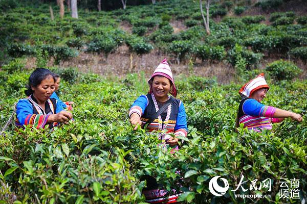 基诺族群众在采茶。(人民网 李发兴 摄)