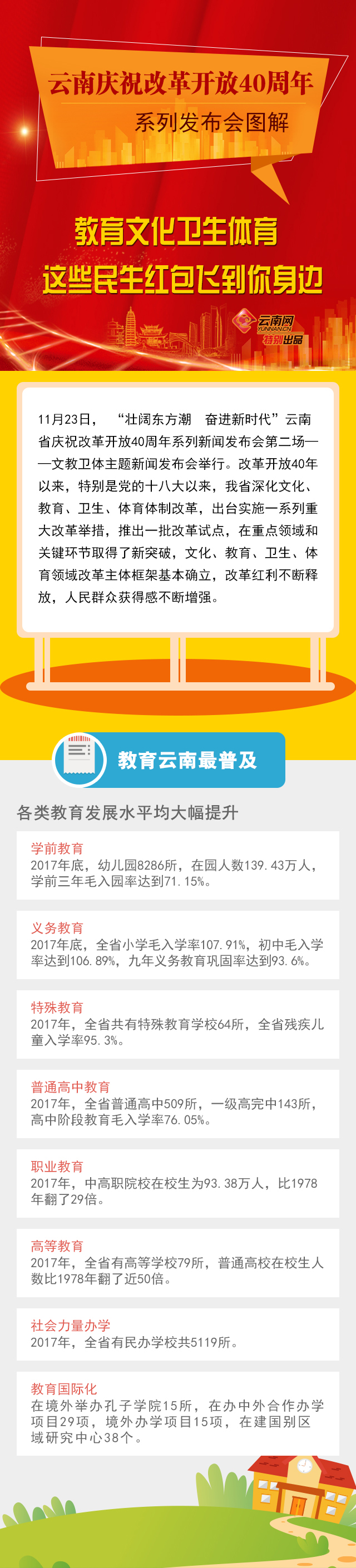【云南庆祝改革开放40年图解】教育文化卫生体育 这些民生红包飞到你身边
