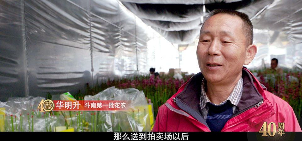 华明升是斗南第一批花农,他告诉记者,原来斗南是昆明市的蔬菜供应基地,改革开放之后承包到户,每家每户还是继续种菜,而他受到朋友的启发,再加上改革开放精神的鼓舞,从家中拿出了90块的“巨款”,大着胆子种了一分地的剑兰。