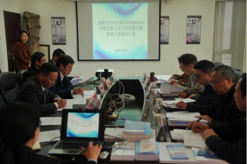 在汇报会上,昆明市卫生计生委综合监督执法局党委书记、局长李红飙汇报了昆明市卫生计生委综合监督执法局作为云南省卫生计生监督实践培训基地的建设工作情况。