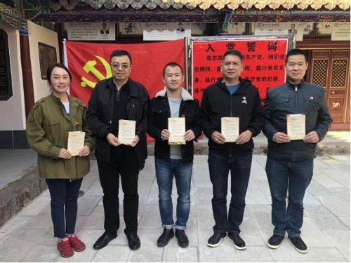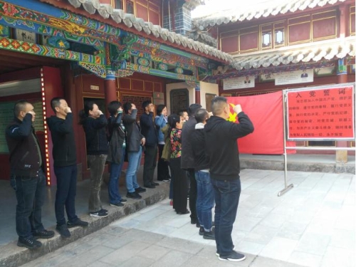 在参观了安宁革命历史教育展览馆后,第一党支部书记带领十四名党员重温了入党誓词,并为5名党员过了政治生日。