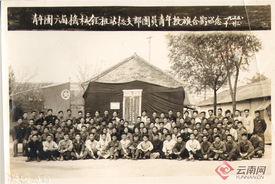 1955年,青年团六局机械厂经组站总支部授旗仪式。