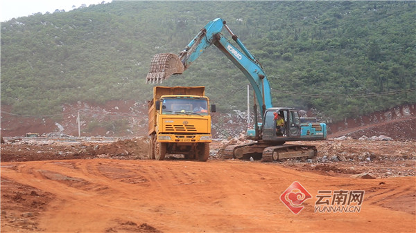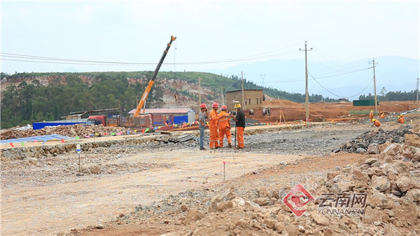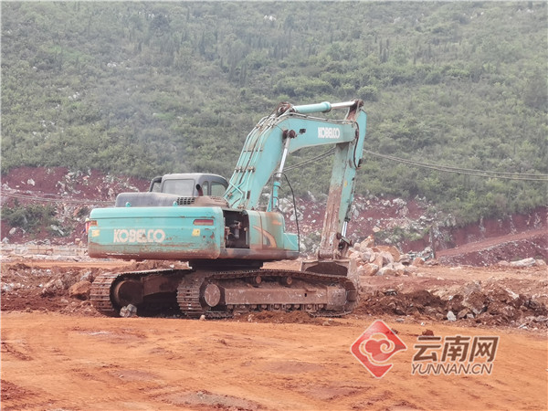 记者在易门工业园区大椿树循环经济产业片区公鸡山区块建设现场看到,建设工地热火朝天,工人们冒着烈日操作20多台大型机械正在修建道路,平整坡地,基础设施建设紧张有序推进。
