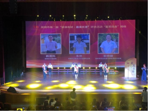 2019年8月19日下午,昆明市第二届“健康春城·最美医者”评选活动揭晓仪式暨“中国医师节”庆祝活动在昆明市工人文化共举行。在会上,昆明市卫生健康委综合监督执法局卫生监督员朱岚荣获了“健康春城·最美医者”荣誉称号,医疗机构监督处荣获了“健康春城·最美医者”团队提名奖。