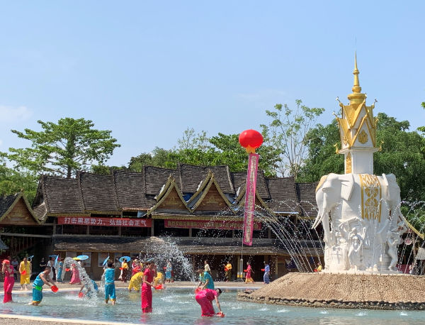 泼水节是傣族一年中最盛大的节日,傣族园里的泼水广场每天下午3点都会有泼水表演,之后在广场上有大型的泼水活动。