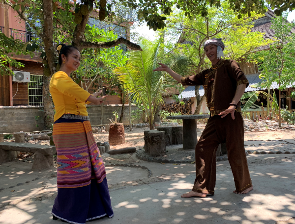 波罕丙和他的妻子带着两个徒弟从勐腊县赶到傣族园,铓锣、象脚鼓一响起,他们就随着乐曲起舞。版纳州文化馆的李老师说: