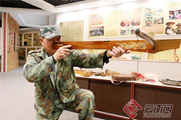 在云南玉溪市新平非遗项目展示中心,玉溪市级非遗传承人刀定祥热情洋溢地为记者讲述了制弩、射弩背后的故事。