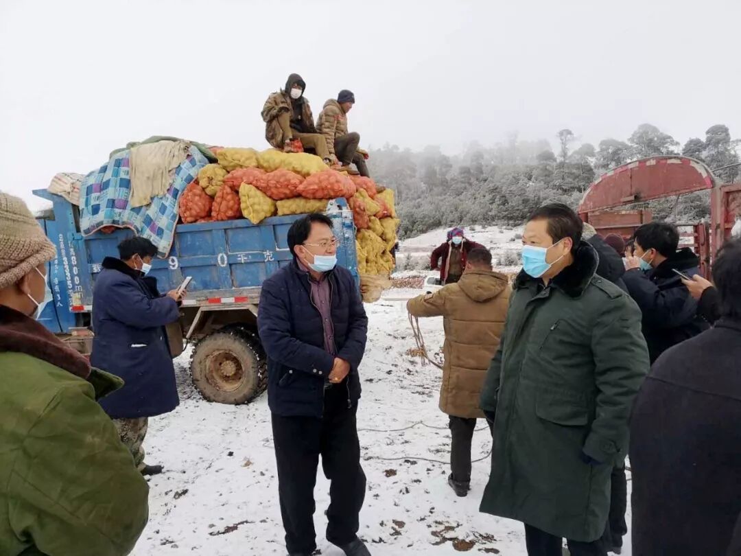 2月10日清晨,牦牛坪村飘着大雪,寒风刺骨。受县政府感召,村民们自发开着拖拉机和农用车陆续将土豆拉到指定捐献的位置,一车车土豆,是支援武汉,众志成城抗击疫情的决心!