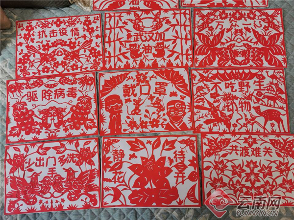 “描花”的儿子邓鹏是元阳县攀枝花乡的一名乡镇党员干部,随着新冠肺炎疫情的蔓延,1月26日,邓鹏被安排到攀枝花乡多沙丫口卡点进行堵卡,排查外来人员,并做信息登记。“描花”创作剪纸防疫宣传标语的想法即来源于对儿子的牵挂,“儿子一去就是17天,工作在前线,我希望能够和他一起为防疫做一些事情。”“描花”谨遵不随意外出的劝导,决定发挥自己的特长,用剪纸的方式把身边的感动和一些宣传标语呈现出来。