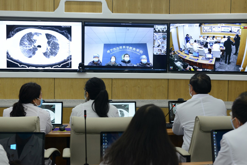 15日,昆明医科大学第一附属医院院长王昆华、副院长何飞组织呼吸、感染、影像等多个学科的专家及时帮助湖北省咸宁会诊一例疑似新冠肺炎的复杂重症病例,给出了指导性诊断和治疗意见。这是湖北咸宁与云南开展的首次复杂重症新冠肺炎远程会诊,搭建起两地联合战“疫”的桥梁。