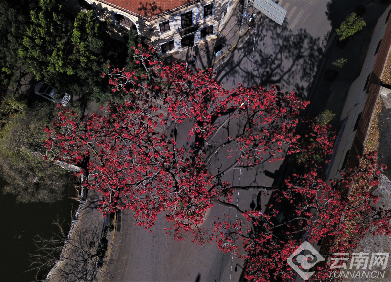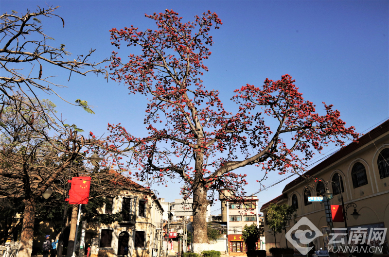 【高清组图】云南蒙自:百年木棉花满树 满树红花春意浓