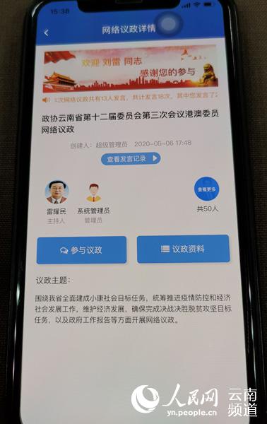 另外,在多数港澳委员无法到场参会的情况下,为保障委员协商议政质量,在政协云南省第十二届委员会第三次会议期间,省政协通过移动履职平台,引导未能到场的港澳委员收看现场直播,并通过平台充分发表意见建议。