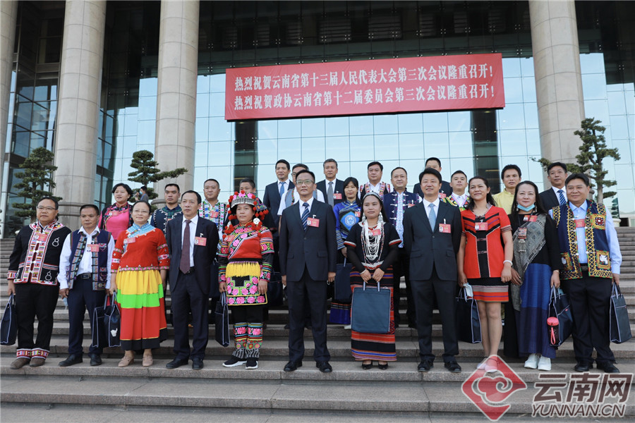 云南省第十三届人民代表大会第三次会议在昆明开幕,图为代表委员会前合影。记者 赵黎浩 摄