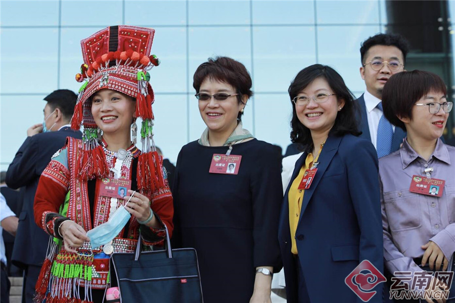 云南省第十三届人民代表大会第三次会议在昆明开幕,图为会前合影。记者 赵黎浩 摄