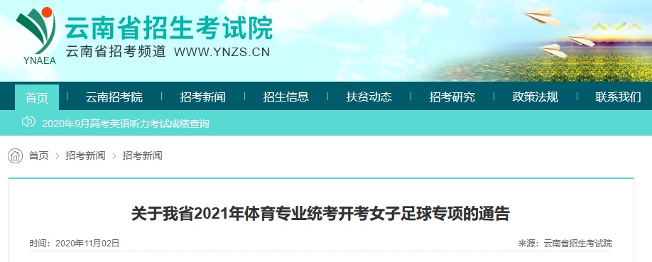 《关于我省2021年体育专业统考开考女子足球专项的通告》(以下简称《通告》)