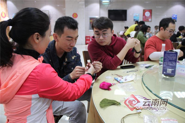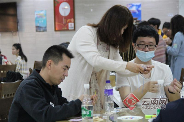 上午,联谊活动在滇池会展中心7号馆拉开帷幕,来自不同单位的适龄青年朋友们组成了四个团队,通过“激情撞撞球”“同心鼓”“口杯相传”“凯歌”等有趣的游戏环节,团队之间展开了“较量”,大家逐渐从陌生到熟悉,彼此拉近了距离。下午,DIY手工活动开始,女生们展示心灵手巧,同时耐心教男生编制手工作品,一个个精美的作品在大家的努力下完美收工,不知不觉大家相互之间的距离更近了。最后,“猜歌名”“扫二维码”加微信将活动推向高潮。经过几轮互动,现场欢声笑语不断。