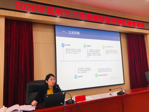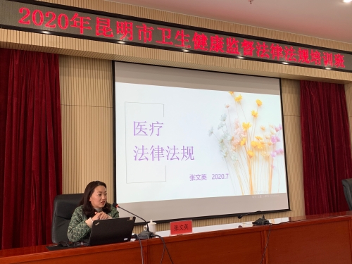 举办此次法律法规专题培训班,不仅是贯彻国家、省、市卫生健康行政部门的要求,更重要的是让卫生监督员对《基本医疗卫生与健康促进法》和《中华人民共和国民法典》这两部法律有个全面的认识和了解,进一步提高全市卫生健康监督系统的法律意识和执法水平。培训班专门邀请了国家卫生健康委员会法规司行政复议处白雪处长及昆明医科大学医学人文教育与研究中心医学伦理学教研室张文英副主任为学员授课。白雪处长自2016年以来一直参与《基本医疗卫生与健康促进法》的起草工作,她从立法历程、法律定位、立法过程中掌握的原则和“明确医疗卫生事业应当坚持公益性”等九大亮点为监督员进行了详细解读。张文英副教授结合实际案例,围绕《中华人民共和国民法典》和医疗卫生相关法律法规为学员进行了讲解。
