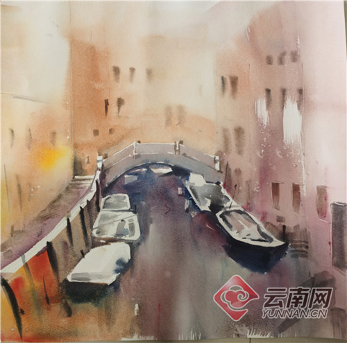 《晚霞》(水彩) 何秋梅 云南省新昆华医院 优秀奖
