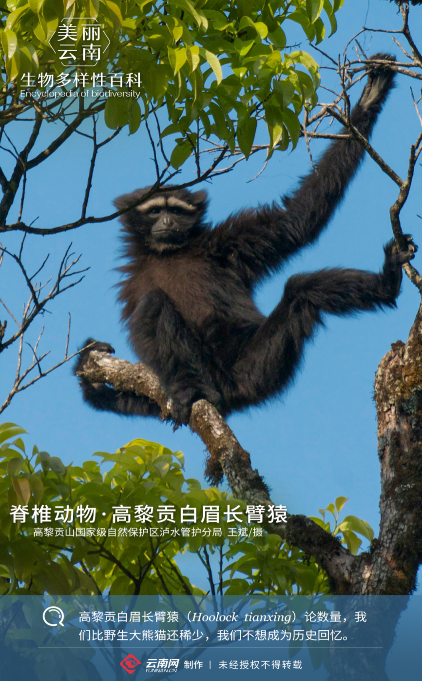 2017年1月11日,由中国科学家领衔、多国科学家参与,共同命名了长臂猿科的一个全新物种——高黎贡白眉长臂猿,他们世代栖息于海拔500~2000米气候炎热潮湿的常绿阔叶林、季风常绿阔叶林和山地雨林中,国内仅分布于云南。