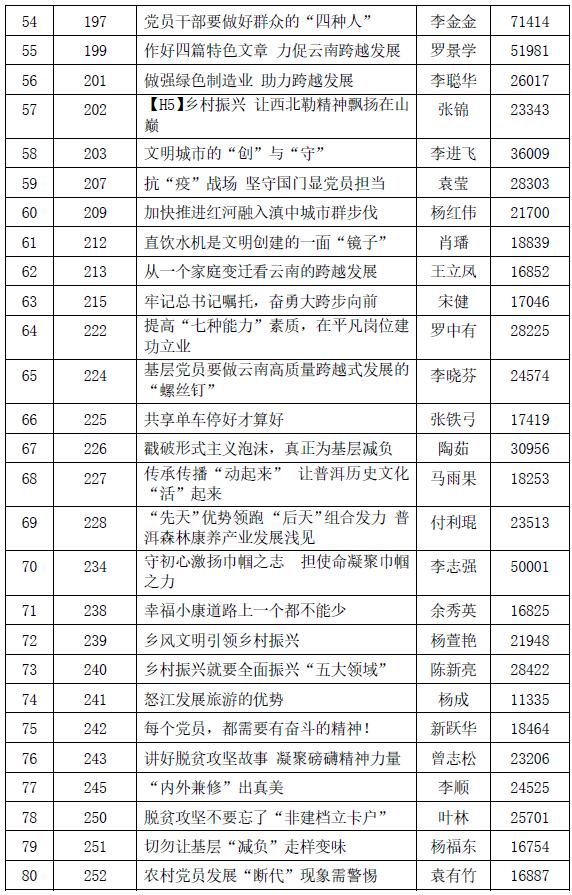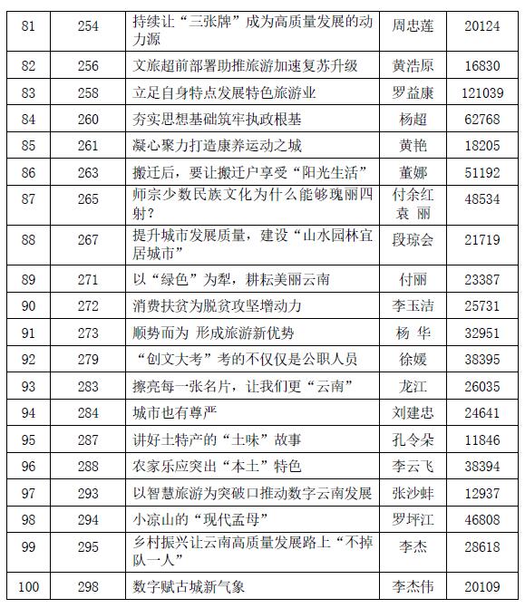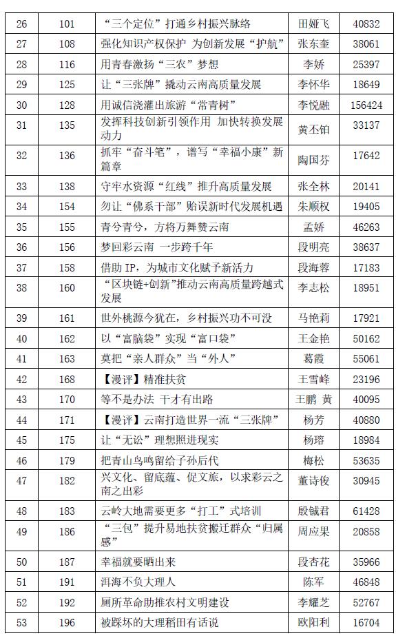 决赛阶段,由省委宣传部、省记协、省作家协会、云南高校、省级媒体等专家评委组成的终评会,对165件作品进行评审,评选出《厚植“抗疫精神”书写高质量发展新答卷》等一等奖作品5件、《把握“三个关系”加快构建现代产业体系》等二等奖作品15件、《沿边开放的“云南样板”大有可为》等三等奖作品45件,以及优秀奖作品100件。其中,一等奖作品《漫评:让生物医药成撬动高质量发展新支点》,采用形式新颖的漫画方式,图文并茂,逻辑严谨,说理生动,将“硬”主题充分“软化”呈现,较好体现了“网络特色”,获得评委一致认可。《美丽乡村建设不能盲目跟风》一文则坚持问题导向,针对美丽乡村建设存在雷声大雨点小、简单模仿、盲目跟风等苗头性问题,从规划引领、“找”准发展定位,打造精品、“提”高服务水平,洁净生态、“做”优乡村底色,发展民宿、“共”享社会红利四方面,旗帜鲜明指出,云南建设美丽乡村需要因地制宜,更需要科学规划,切勿盲目跟风,相互攀比。类似优秀作品比比皆是,各行各业、省内省外的不同专家学者,纷纷通过见证者、受益者、参与者和推动者等视角,为云南发展提建议、出思路、想措施,为推动云南高质量发展营造了良好的舆论氛围。