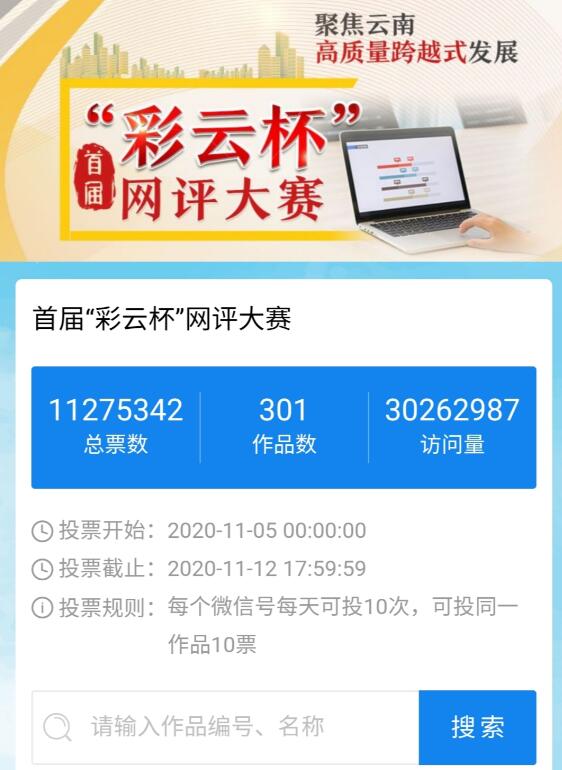 大赛由云南省委网信办主办、云南网承办、各州(市)委网信办和省内主要网媒协办,旨在深入贯彻落实习近平总书记考察云南重要讲话精神,反映全省党员干部和各族群众深学笃行的精神风貌、生动实践、心得体会和思考建议,网聚推动云南高质量跨越式发展的智慧力量。赛事分为初赛、投票、决赛三个阶段。自9月9日启动以来,赛事备受科研院所专家、各地网评员、基层公务员、一线扶贫干部、高校老师、退休干部等群体关注,吸引了云南及江苏、陕西、重庆、四川、北京、河南、江西、河北、湖北、浙江等10余省份1000余件文字、漫评、H5等作品参赛。作品内容丰富,主题涵盖党建引领、治理体系和治理能力现代化、八大重点产业、三张牌、现代化产业体系构建、数字云南、自贸试验区、民族团结、生态环保、乡村振兴、文化旅游及抗疫启示等丰富多元议题,经过严格筛选,云南网及各州市媒体公开发布作品301件,进入网络投票环节。