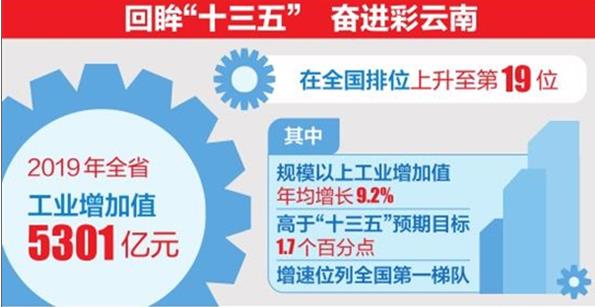 “十三五”以来,全省全部工业增加值跃上5000亿元台阶,2019年达到5301亿元,全部工业增加值在全国排位从23位上升至第19位,其中,规模以上工业增加值年均增长9.2%,高于“十三五”预期目标1.7个百分点,高于全省GDP增速0.4个百分点,增速位列全国第一梯队。