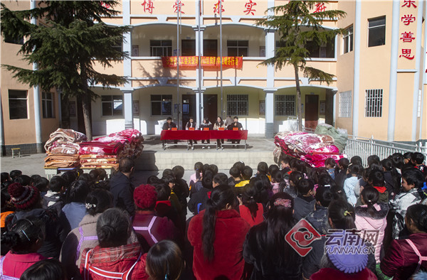 2021年的冬天,乌蒙山区气温骤降,冰冻天气频繁。天气无情工会有情,云南省总工会女职工委员会心系乌蒙山区的学生,继续关爱和支持脱贫山区的孩子,通过省总工会驻板桥村驻村扶贫工作队送去了工会组织的温暖,2021年1月18日下午在板桥村楠木谷小学举行捐赠仪式,向镇雄县赤水源镇板桥村楠木谷小学捐赠了100床毛毯,让山区学生温暖过冬。会上孩子们都笑开了花,纷纷表示一定好好学习,长大以后报效祖国,回报社会,不辜负社会各界的关心和厚爱。家长们也向驻村扶贫工作队表达谢意,他们深切感受到党的脱贫攻坚好政策,并感谢云南省总工会近三年来为当地老百姓做的实事。