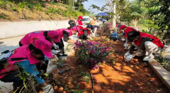 活动内容:勐腊县勐仑镇城子村委会工作人员穿上红马甲,发挥雷锋精神,开展爱国卫生“7个专项行动”提升人居环境,助力疫情防控,变成绿叶中的“红花”。