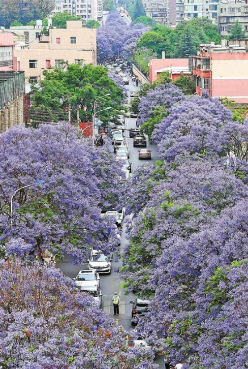 昆明教场中路蓝花楹大道成网红打卡地。记者 杨峥 摄