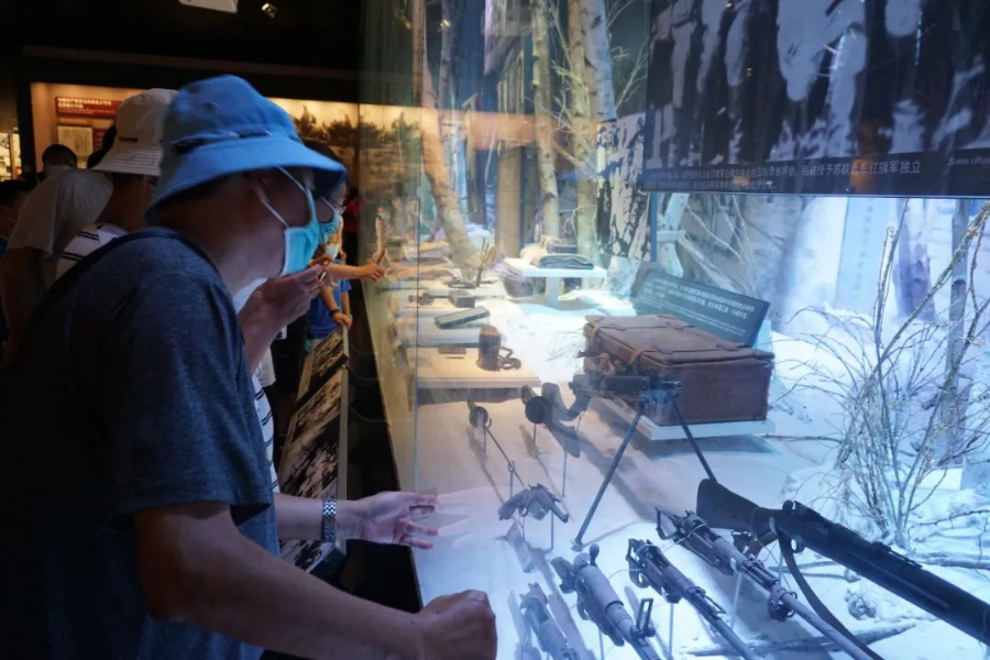 展馆以抗战文物、珍贵历史图片,辅以相关文字、地图、图表、景观以及多媒体展示手段,通过以物证史,把抗日战争中的动人故事、中国人民的抗争历史、伟大的抗战精神精准地传递给参观团成员。