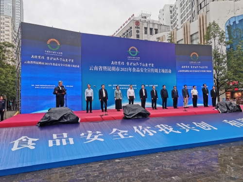 根据国务院食品安全办等26部门《关于开展2021年全国食品安全宣传周活动的通知》《云南省人民政府食品安全委员会办公室关于开展云南省2021年食品安全宣传周活动的通知》要求,按照全省统一部署安排,2021年6月8日,云南省暨昆明市2021年食品安全宣传周启动仪式在南屏街中心广场举行,吹响了全省、全市开展食品安全宣传的“集结号”。副省长张治礼宣布食品安全宣传周启动。昆明市卫生健康委员会综合监督执法局派员参加了云南省暨昆明市2021年食品安全宣传周启动仪式。