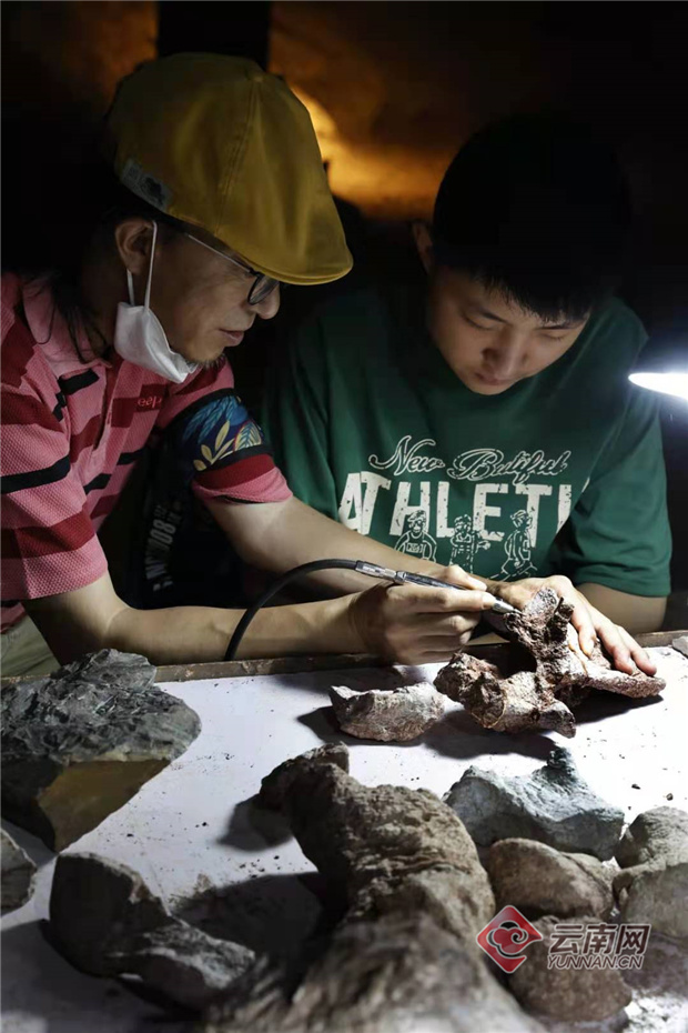 禄丰恐龙大遗址馆内小朋友体验化化石修复