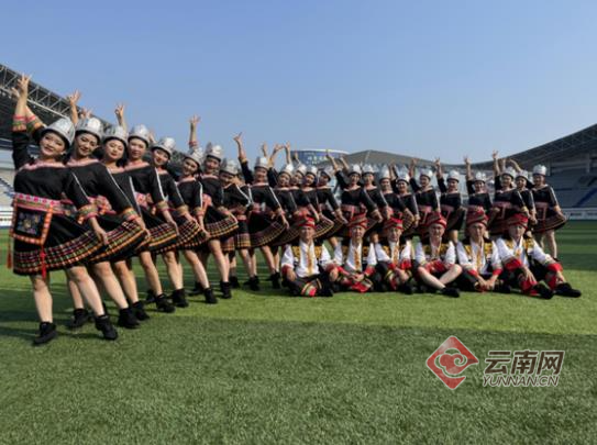 公司职员参加健身操比赛合影