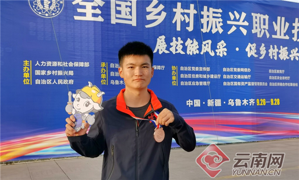 9月26日,在全国乡村振兴职业技能大赛上,来自云南建投技工学校建筑施工专业的选手蒋伟正专注地用水平仪校正着垂直度和水平度、按照图纸要求切割砖块、调整好皮数杆和拉线,拿起一块砖均匀的抹上砂浆进行砌筑。“非常激动在此次大赛中荣获铜牌,在 ‘技能成才,技能报国’这条路上,我觉得我做得还不够好,所以我需要更加努力、不断突破自我,坚持不懈走技能成才之路,行技能报国之责。” 获得砌筑工(学生组)铜牌的蒋伟说,今后,要以大国工匠为榜样,不断突破自我,发挥一技之长,去影响身边更多的人,根植梦想、不负韶华。