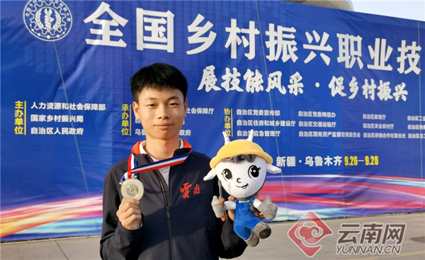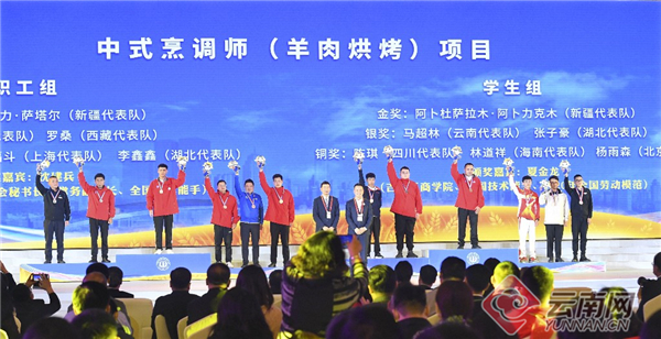 云南网讯(记者 杨萍)9月27日,在全国乡村振兴职业技能大赛的比赛现场,飘起了阵阵烤羊肉的香味……来自昆明高级技工学校中式烹调专业马超林代表云南正在专注地进行羊肉串的烘烤制作,最终马超林以“色、香、味、形、意”的美味菜肴征服了裁判的味蕾,收获了学生组银牌。