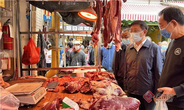 王予波在昆明市随机调研农贸市场。记者 顾彬 摄