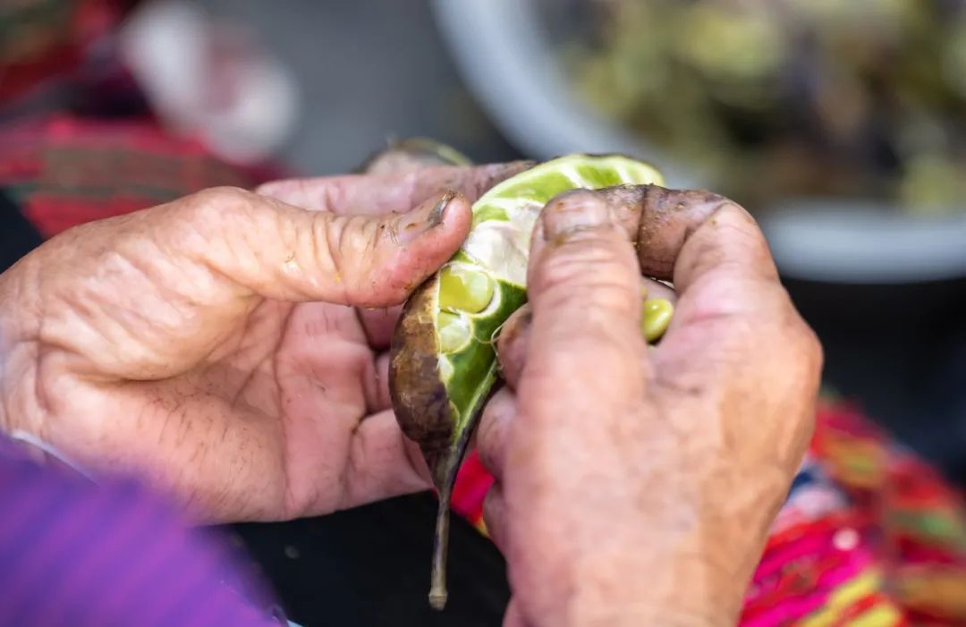 母亲为了这碗白米粥费了不少工夫和劳力,因为皂角米长于皂荚树,皂荚树又生长在家对面的小山谷中,需要经过一片杂木丛,爬上高十几米的皂荚树才能采摘,几个来回后看着母亲汗流浃背,手臂上的刮痕溢出丝丝血迹,心里感到莫名的慌张和焦虑,但为解馋也就慢慢平复了。回到家后,最重要的工序就是要把采摘下来的皂荚去壳,这个也是最麻烦最耗时的一件事,需要用手操作,花费半天的光景,这样皂角米就如慢慢揭开神秘面纱的黄花大闺女般,公开于世人面前。