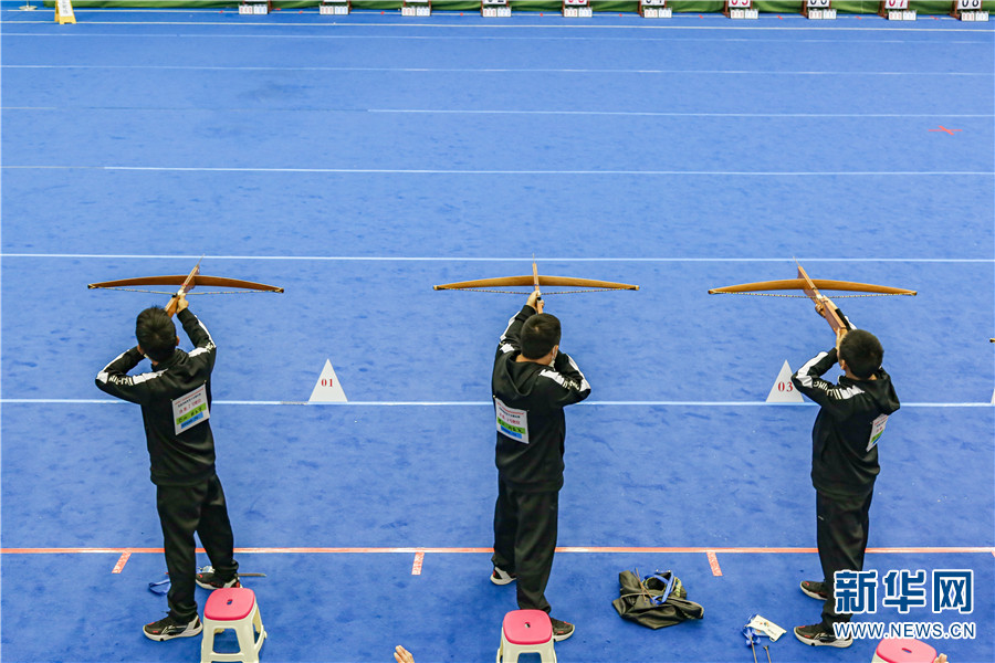 男子民族传统弩(个人全能)赛决赛现场(6月14日摄)。新华网 和润仙 摄