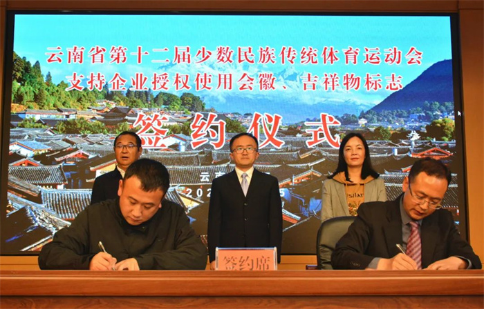 6月15日下午,省第十二届民族运动会支持企业授权使用会徽、吉祥物标志签约仪式举行。签约仪式旨在进一步通过民族运动会平台,提高丽江特色产品的市场知名度,推进产品宣传和销售。