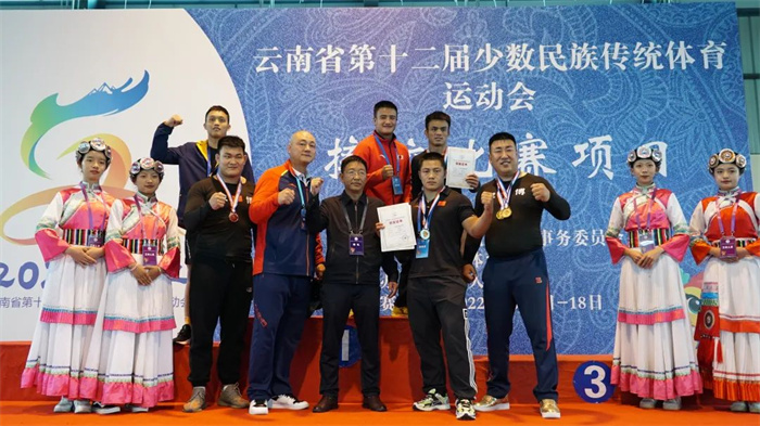 据了解,本次丽江民族式摔跤代表队共8人,带队教练熊杰是云南省柔道队领队。在此前三届省民族运动会上都拿过金牌,具有很强的专业性。他说:“本次来参赛的运动员都具有较强实力,从这几天的比赛来看,每个运动员都发挥得比较好,排名都靠前。”截至目前,丽江代表队在民族式摔跤项目中共获得了4枚金牌。