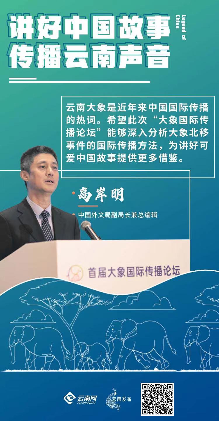 中国外文局副局长兼总编辑高岸明:云南大象是近年来中国国际传播的热词。希望此次“大象国际传播论坛”能够深入分析大象北移事件的国际传播方法,为讲好可爱中国故事提供更多借鉴。