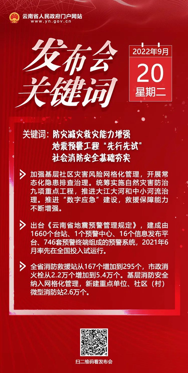 9月20日上午,“云南这十年”系列新闻发布会·应急体系建设专场发布会在海埂会堂召开,云南省应急管理厅、云南省地震局和云南省消防救援总队有关负责人介绍云南应急管理体系建设这十年来取得的经验成效,并回答记者提问。