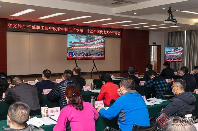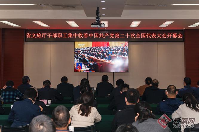 云南网讯(记者 牟燕红)10月16日,中国共产党第二十次全国代表大会在人民大会堂隆重开幕。云南省文化和旅游厅在五楼会议厅组织机关干部职工收听收看开幕会盛况。在观看过程中,大家集中精神,专心专注,认真聆听,不时对重要内容进行记录。报告在干部职工中引起了强烈反响。“报告鼓舞人心,催人奋进。”大家纷纷表示,要立足自身岗位、努力拼搏奋斗,用实际行动奋力谱写云南文化和旅游高质量发展的新篇章。