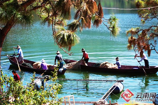 湖边连片的良田、花草、树木和悠然自得的牛羊,以及掩隐在万绿丛中的民族村落,在蓝天碧水的映衬下,显得秀丽高雅,谱成一首如诗如画、如梦如幻的田园生活乐章,形成天、水、人和谐共处,人与自然亲密无间的极乐景象。