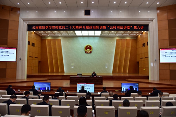 云南高院党组成员、审判委员会专职委员、厅级干部,各部门主要负责人,全体干警在主会场参加学习。各中基层法院通过视频形式在各院分会场参学。