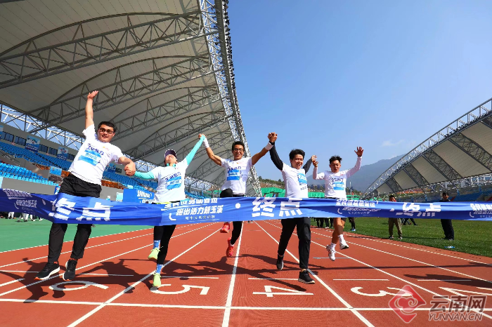 参赛队伍终点“手拉手”冲刺 供图
